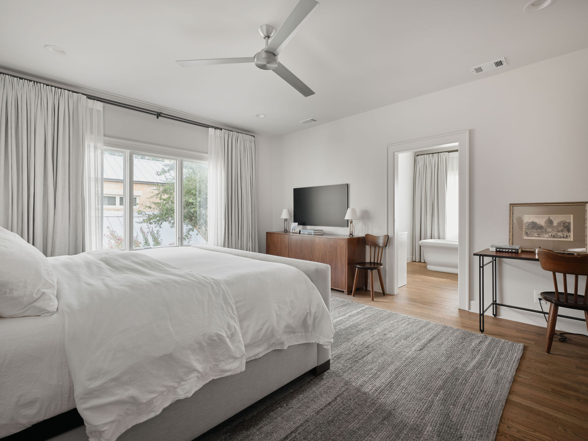 Nestled in the heart of Austin’s sought-after Clarksville neighborhood, this sophisticated 3-bedroom, 3.5-bath residence blends timeless elegance with designer finishes. Thoughtfully updated, the home features hand-troweled plaster walls throughout the main level, a sleek reimagined kitchen with premium appliances, designer window treatments, rich wood flooring and a serene, spa-like primary bath.